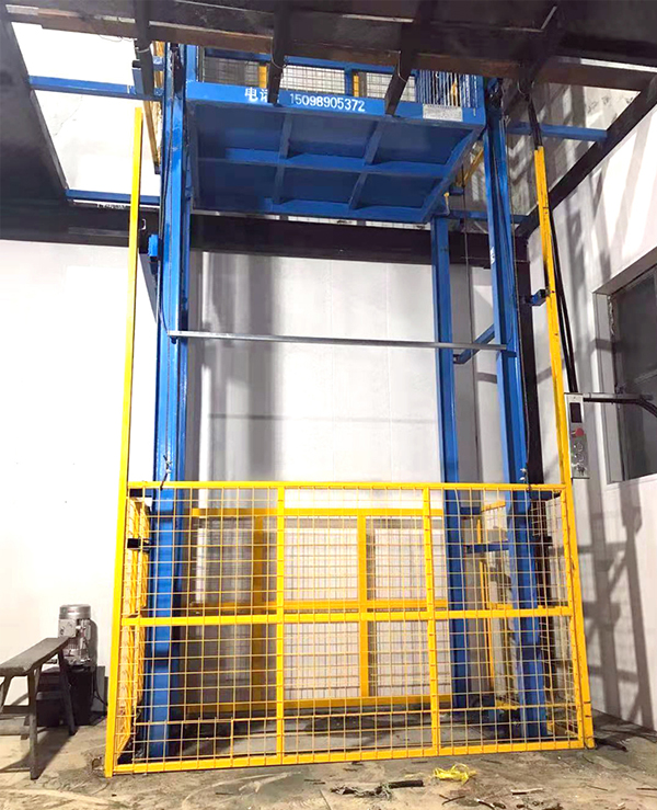浙江海盐鲍总采购的这款1吨升降货梯的尺寸是1500*1100mm,载重1000kg,提升高度是3500mm,这个现场环境是在原有车间加层后,改为仓库的一个安装环境,从1500mm单方向进出。