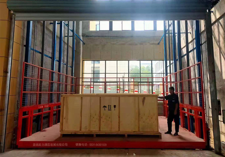 液压货梯的安装简单方便,不受现场空间的限制,无需机井房和井道,地坑只需20公分或不做地坑,室内室外都可以安装。液压货梯的自高高度20公分左右,把平台放入20公分的地坑后,设备与地面平齐,方便叉车等搬运工具进入平台轻松装卸作业,大量减少劳动力,并且大大提高了装卸作业的工作效率。