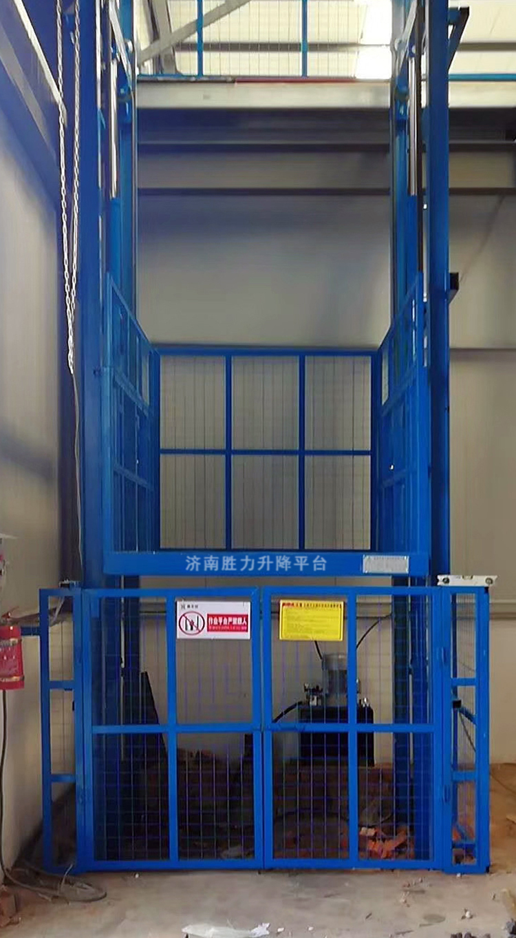 电动液压货物提升机适合于有二层及以上工业厂房、仓库、超市等多楼层间的货物传输。
