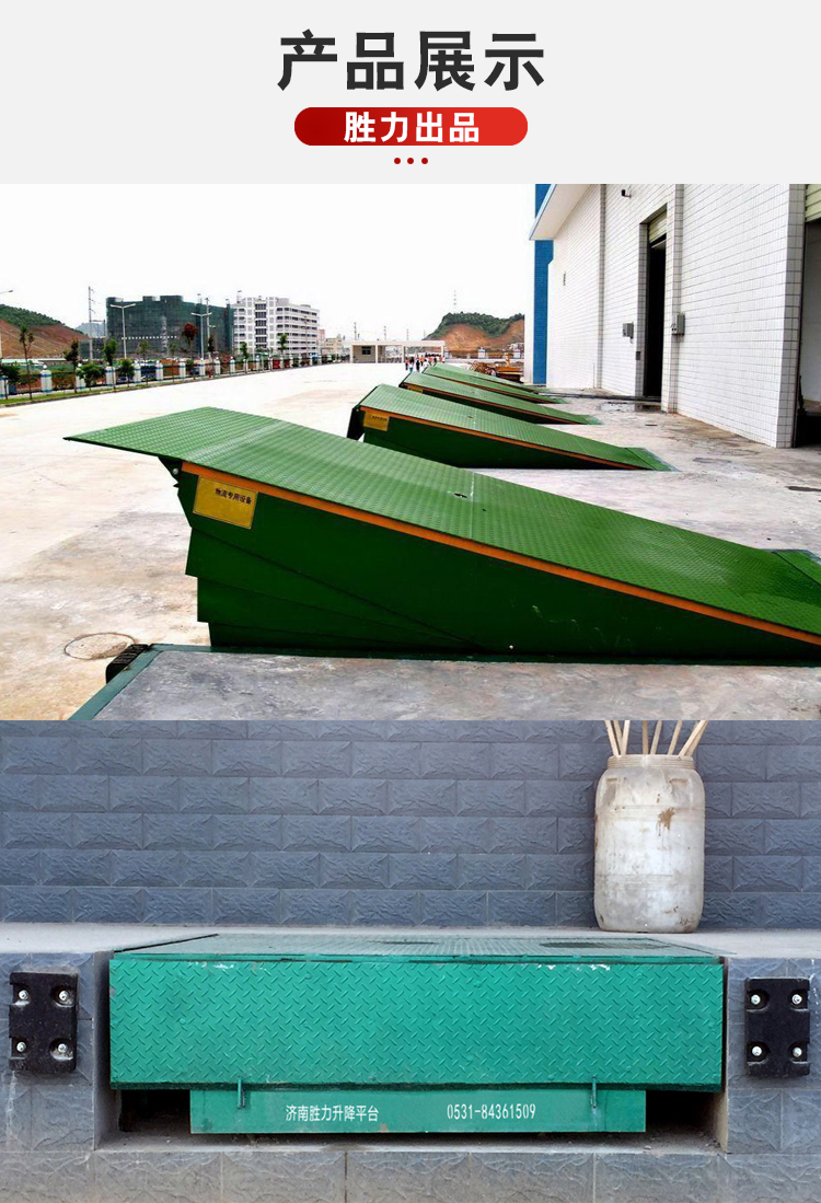 固定式登车桥是与仓储月台一起的装卸辅助设备,本设备与月台一体,可根据货车车厢不同高度调节即可调高也可调低,它的高度调节功能使货车与库房的货台之间架起一座桥梁,方便叉车驶入车厢内部进行货物的批量装卸。设备采用进口液压泵站,两侧设有防轧裙板,工作更加安全,仅需单人作业,即可实现货物的快速装卸。固定登车桥可使企业减少大量劳力,提高工作效率,获取更大经济效益。固定登车桥被广泛应用在装卸车频繁、车型不一的大型企业、仓库、车站、码头、仓储物流基地、邮政运输、物流配送等。