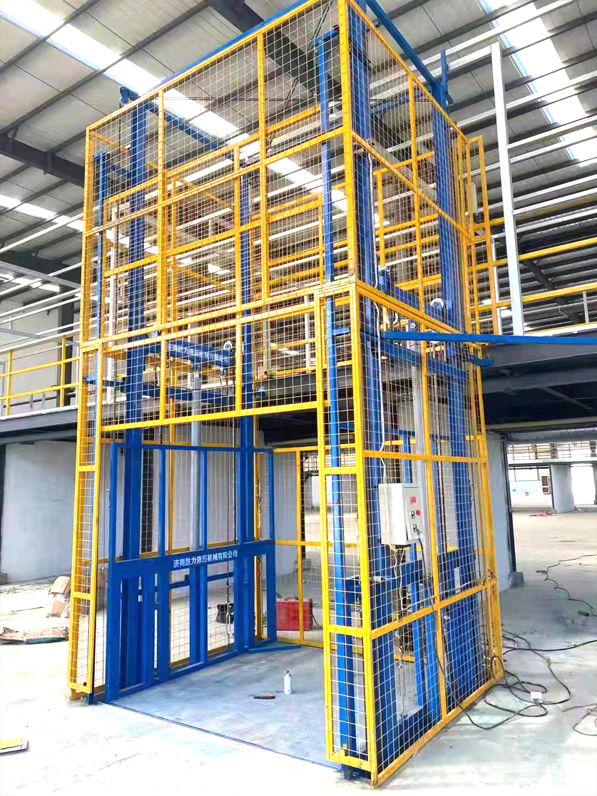 工厂车间简易运货升降机一般是指导轨链条式液压升降货梯,这是一款无需底坑、无需井道、无需机房即可安装的升降设备,被广泛用于工厂、车间、仓库、防爆化工车间、冷库、超市等多楼层内的物料和货物的上下运输。工厂车间简易运货升降机的主要构成部分是液压油缸、重型链条、主体导轨、载货台面、液压泵站和电控系统等组合而成。